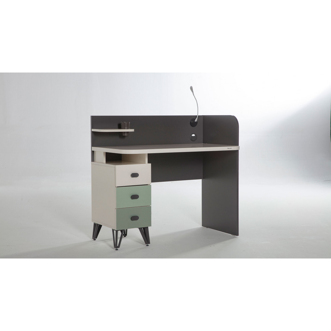 ВЕРХНИЙ ЯЩИК ЦВЕТА СЛОНОВОЙ КОСТИ, СРЕДНИЙ ЯЩИК СВЕТЛО-ЗЕЛЕНЫЙ,НИЖНИЙ ЯЩИК ТЕМНО-ЗЕЛЕНЫЙ.