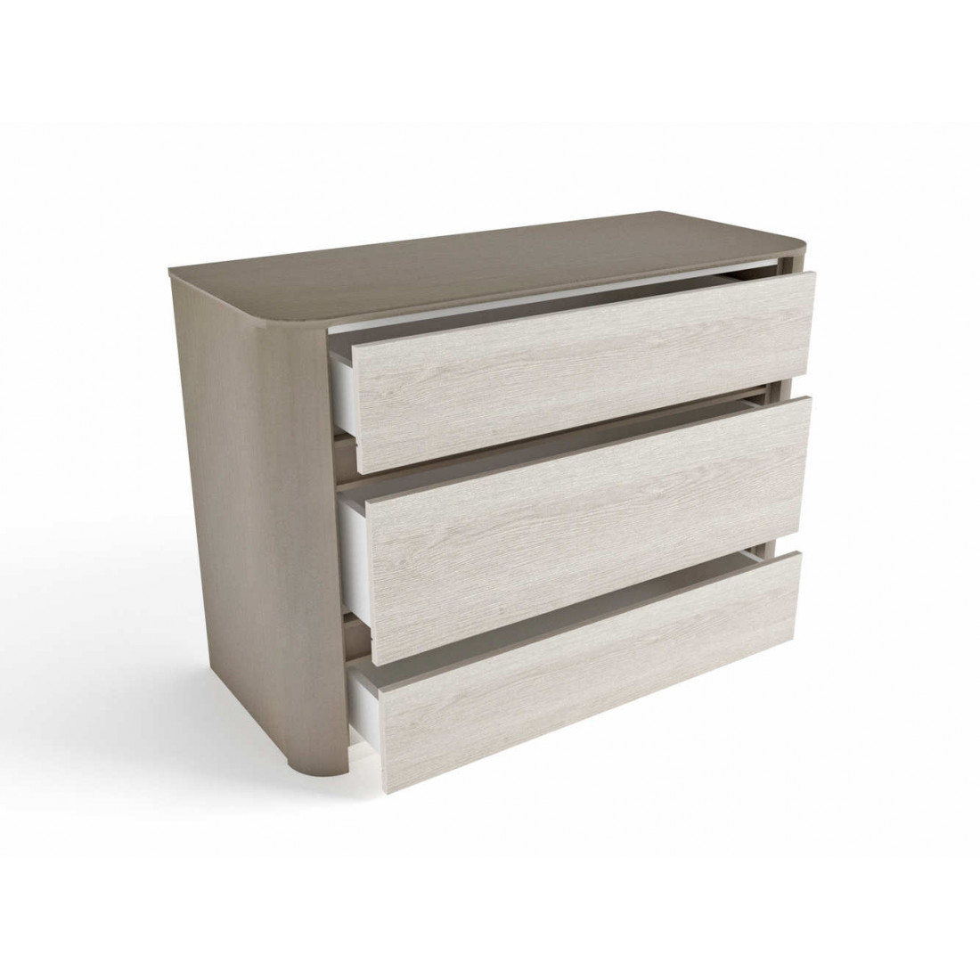 Комод Лацио является представителем спальни «Лацио». Спокойные тона и фактуры спальни располагают у отдыху, делают пространство легким и уютным. Сочетание глубокого серого и светлого оттенков исключают громоздкость и помогают достичь эффекта зрительного увеличения пространства. Приобретение «Лацио» гарантирует покупателю визуальную эстетику, а так же удобство и практичность применения.