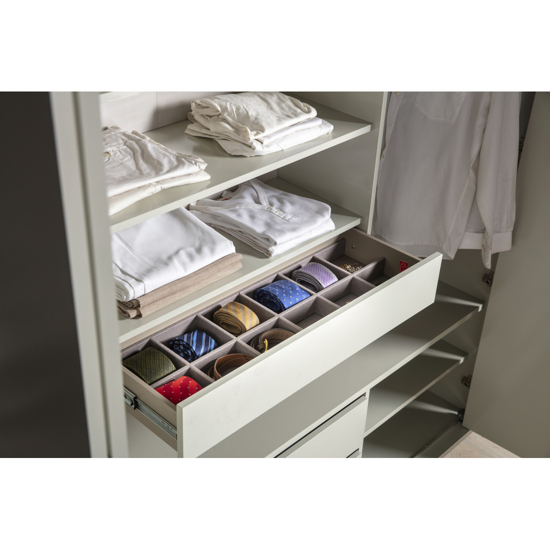 Внутри шкафа выдвижные ящики