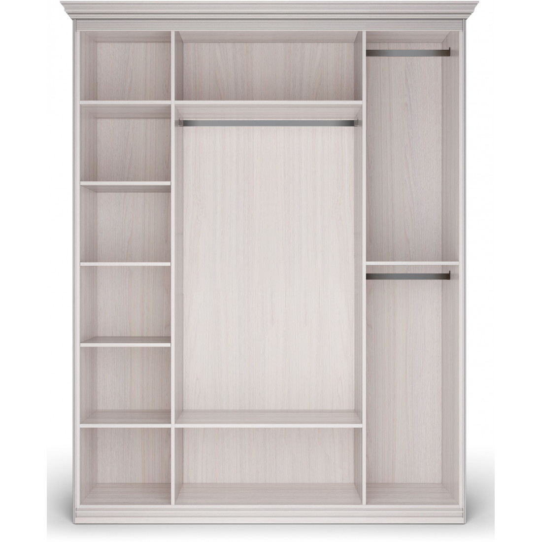 Шкаф 4-х дверный с зеркальными и глухими дверями Неаполь Ясень анкор светлый (патина "серебро")