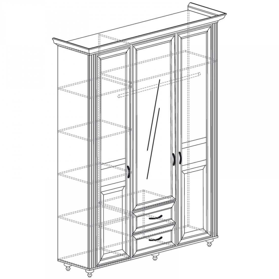 Фасады: МДФ, декор – дуб ридинг, рисунок, патина, стекло с фацетом и рисунком, зеркало